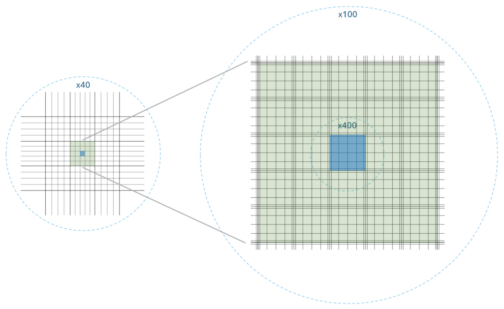 Wielkości tych pól są sprytnie dobrane, tak żeby „pasowały” do różnych powiększeń mikroskopu: