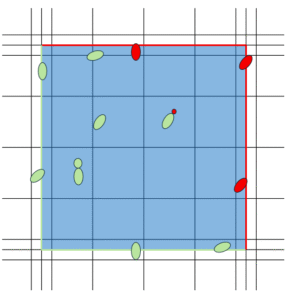 Niezależnie od ilości drożdży, zawsze prędzej czy później pojawia się pytanie: co zrobić z komórkami, które są akurat na granicy kwadratu, lub które właśnie pączkują. Żeby uniknąć „dubli”, warto przyjąć zasadę, że zlicza się tylko te drożdże które dotykają jednej pary sąsiadujących krawędzi, np. lewej i dolnej. A w przypadku „pączków”, tylko te, które są większe od połowy oryginału (oczywiście jest to pomiar „na oko”, więc dość subiektywny):