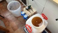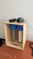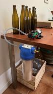 Sporo się przy tym narobiłem, a okazało się, że umieszczając korpusy wewnątrz nie mogę ich po wszystkim odkręcić i wyczyścić. W następnej generacji umieściłem korpusy na tyle skrzynki i tak przefiltrowałem pierwszą część nastawu: